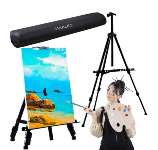 - АЛЮМІНІЄВА КОНСТРУКЦІЯ - легкий і стійкий мольберт із заліза. Стаціонарний гак дозволяє підвісити баласт і збільшити вагу комплекту, що може полегшити роботу при сильному вітрі.