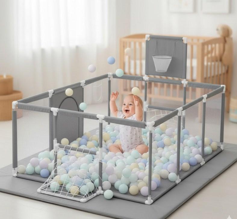 Забезпечте своїй дитині найкращі умови для гри та розвитку з нашим Великим манежем з кошиком і воротами.