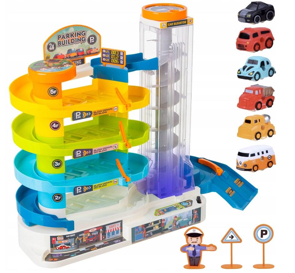 Подаруйте своїй дитині справжній світ руху, швидкості та фантазії з інтерактивною парковкою Iso Trade! Цей великий багаторівневий гараж з ліфтом створений спеціально для маленьких шанувальників автомобілів. Парковка має 5 рівнів, спіральний підйомник з ручним або електричним керуванням, а також 6 машинок у комплекті, щоб розваги почалися відразу після розпакування!