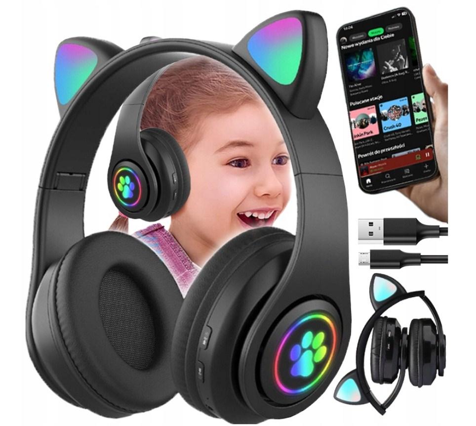 Зробіть прослуховування музики справжнім задоволенням! Ці зручні бездротові накладні навушники стануть улюбленим аксесуаром вашої дитини. Яскраві котячі вушка з RGB-підсвічуванням створюють веселий настрій і додають образу індивідуальності.